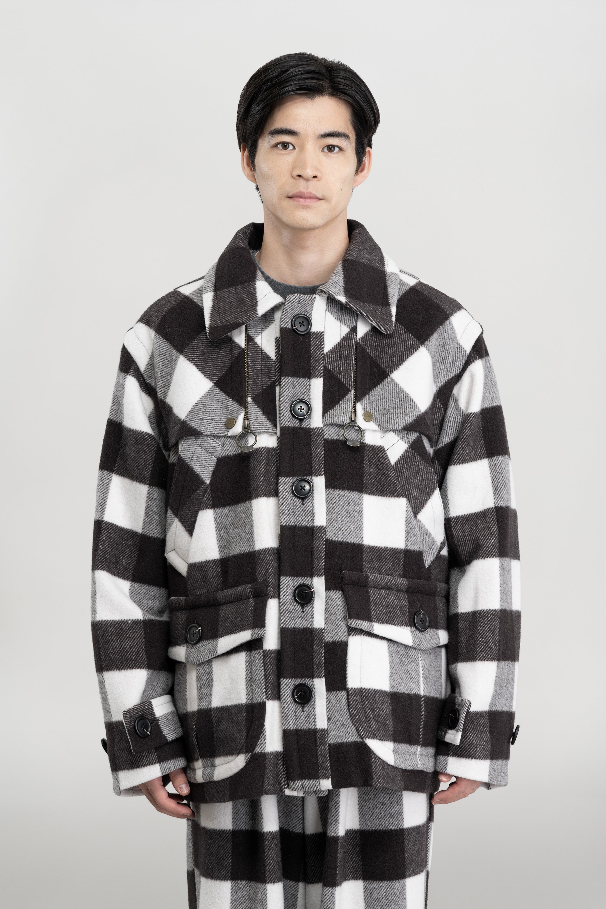 裏地付きハンドウォーマー、大容量が収納可能なインプリーツ付きポケットなどフィールドウェアらしいディティールと、ウールの重厚さが増します。