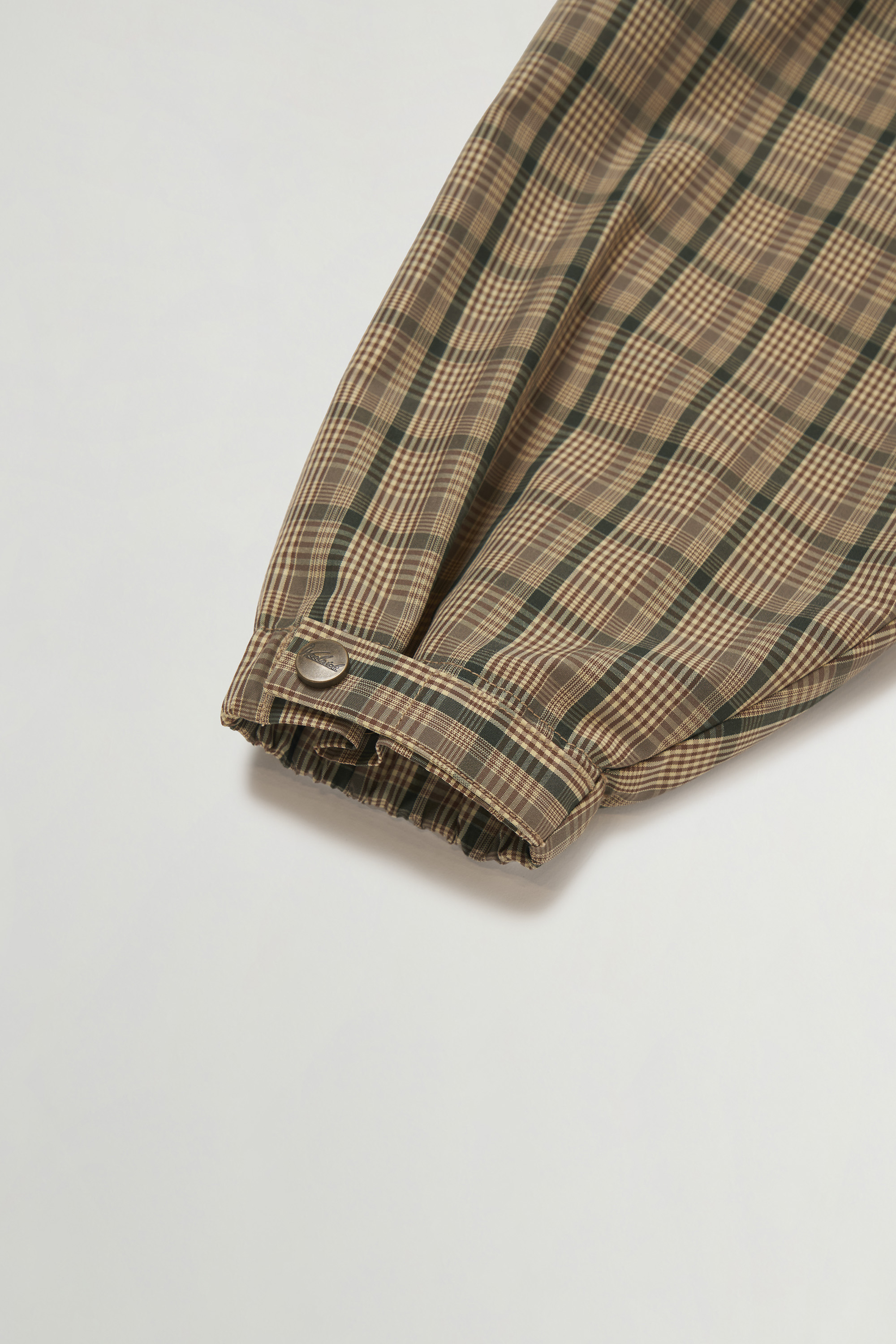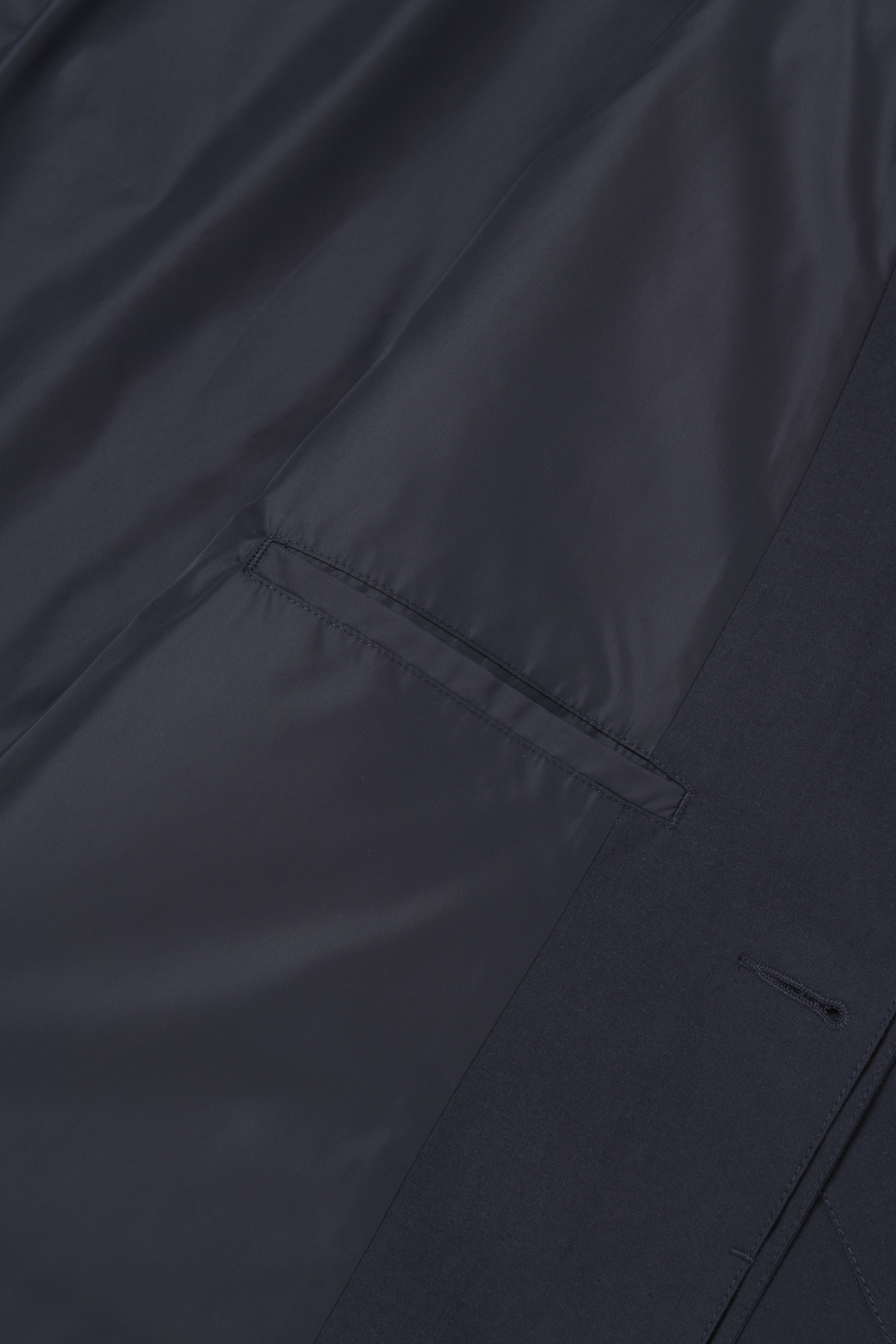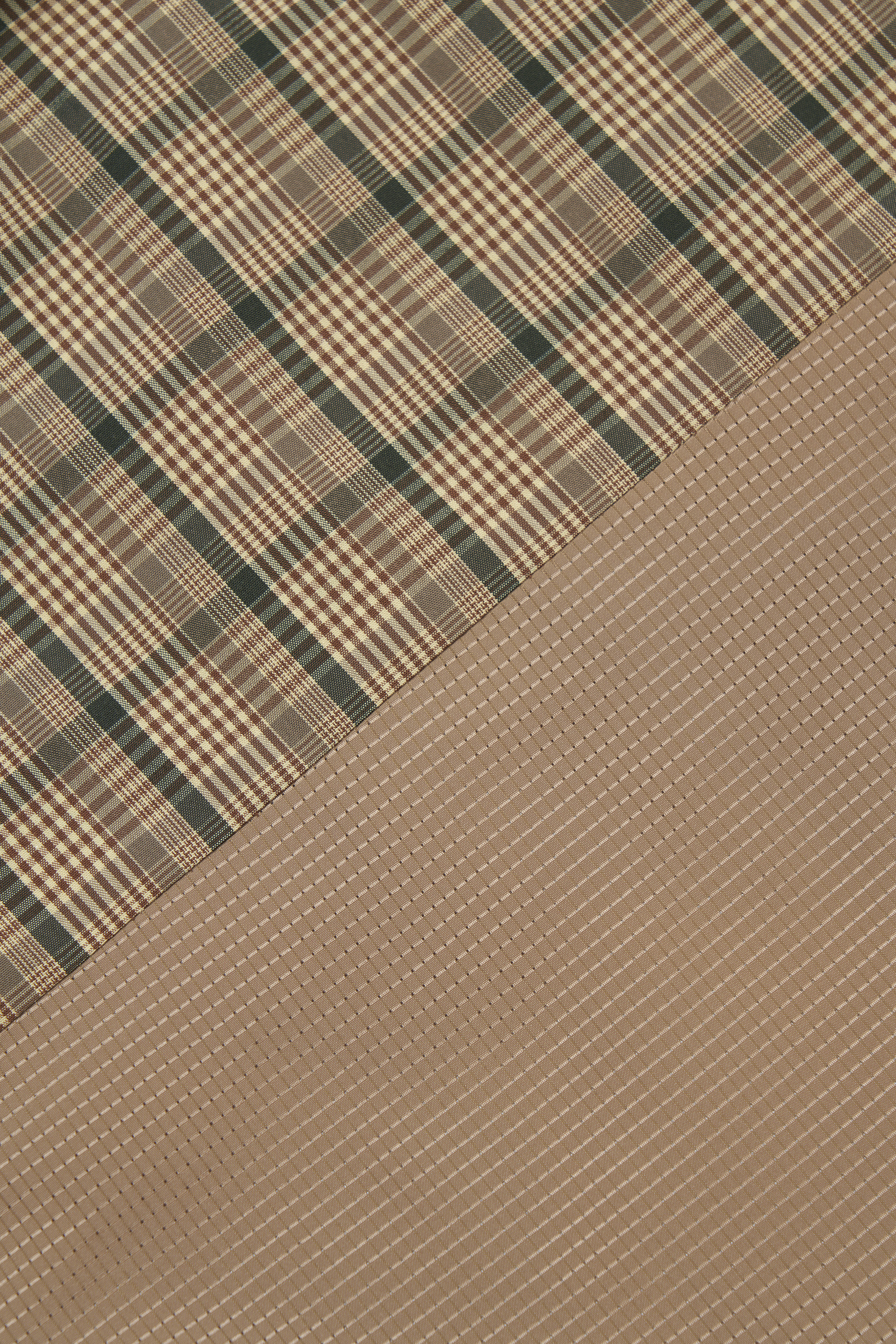 経糸にオーガニックコットン、緯糸にリサイクルナイロンを配した先染め高密度生地は、ナチュラルな風合いに上品な光沢と色の奥行きを与えます。